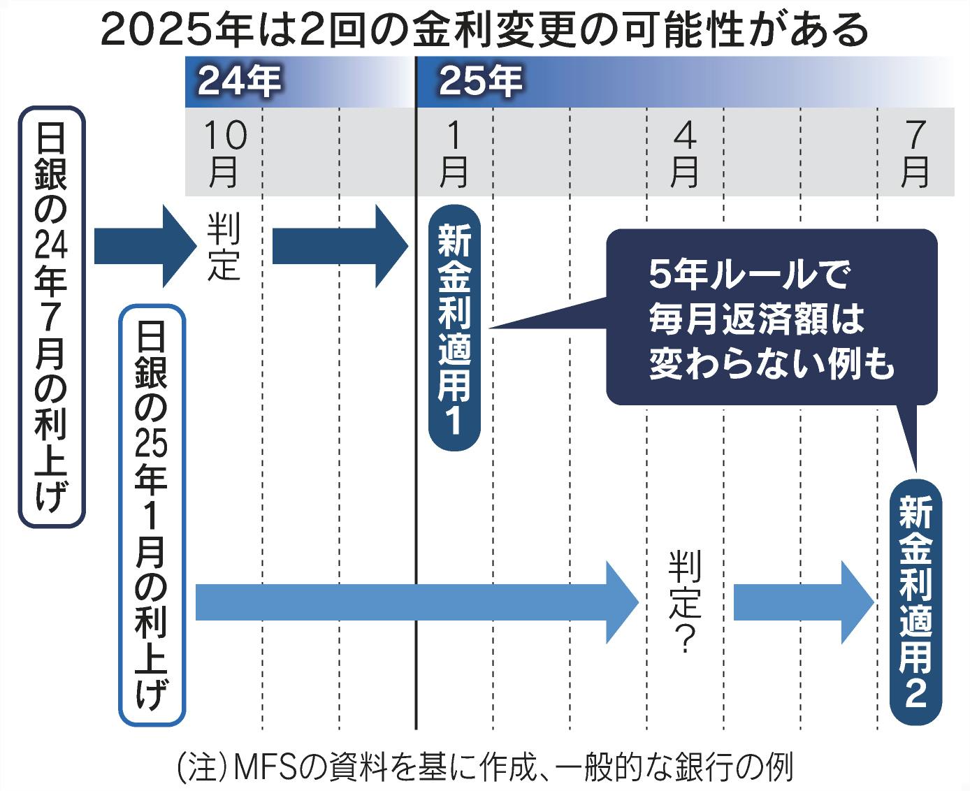 変動型の住宅ローンなどの基準金利は4月に引き上げられるとすると、概ね7月の返済分から、新たな利率が適用されるケースが多くなりそうだという。