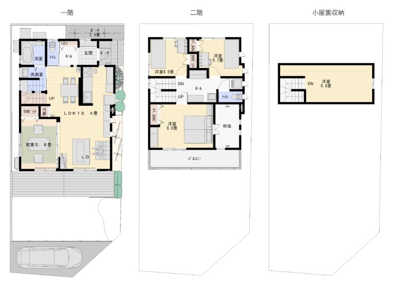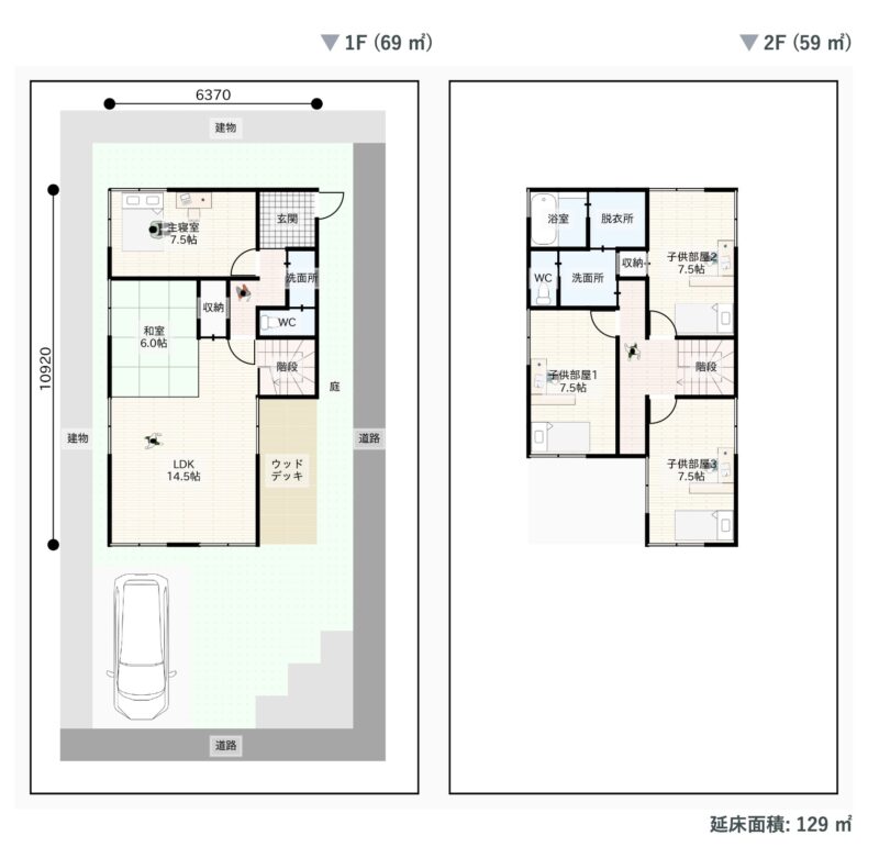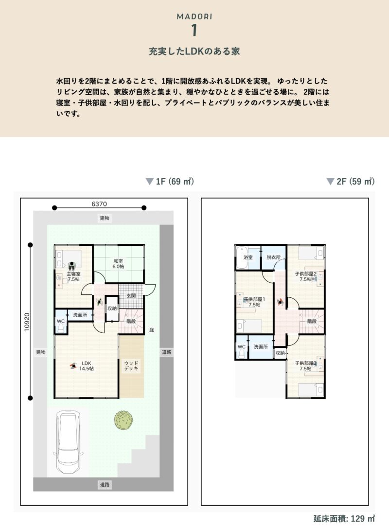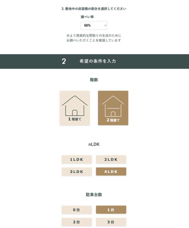 現在の建物と同様に、2階建て、4LDK、駐車場1台を選択しました。