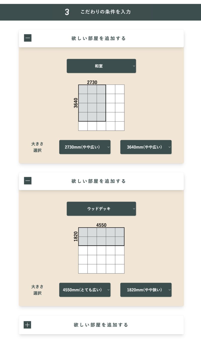 我が家のプランに当てはまるものとして、和室とウッドデッキを追加しました。