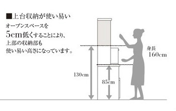 このためか、正面に立ったときに上棚の位置が低く、背の低い妻にも使いやすく見やすそうなんです。