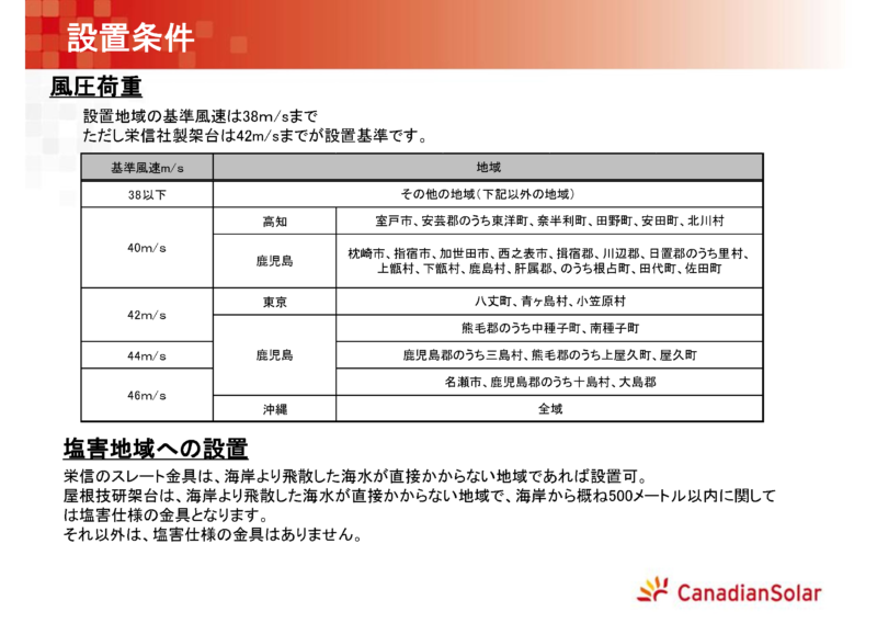 カナディアンソーラーは、塩害に強いことをアピールしているので、この点は元々期待していたのですが、気になる記載がありました。