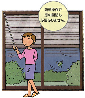 この、ステッキのような操作棒でシャッターの開け閉めを操作します。
