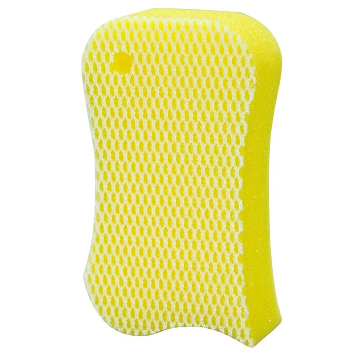 このスポンジは、ブラシスポンジといいまして、スポンジの一面が細かいブラシになっているんです。