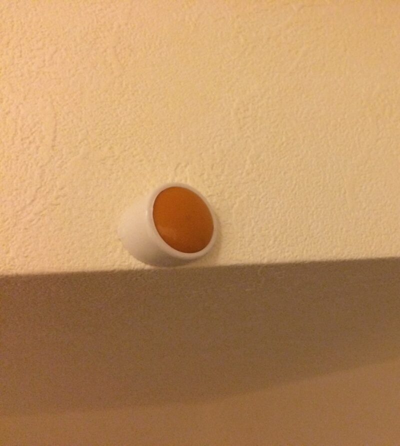ちょうど石膏ボードの釘を打っていた高さあたりなので、ピンが貫通して裏側に飛び出ることはないでしょう。